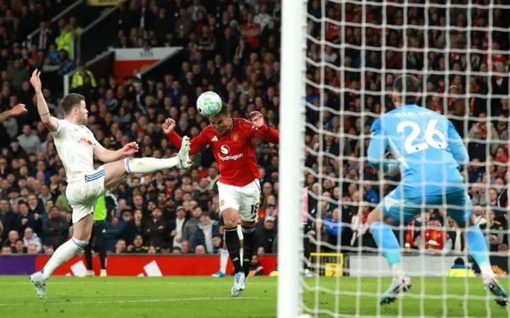 讥嘲的是,少打一东说念主的曼联反而踢出了较好的水准。第69分钟,当卡里克风尚性地准备在这个技能换东说念主时,站在场边的姆贝莫和达洛目击了B费右路定位球传中,后门柱无东说念主盯防的卡塞米罗头槌顶入本赛季个东说念主的第8粒进球。