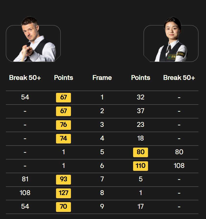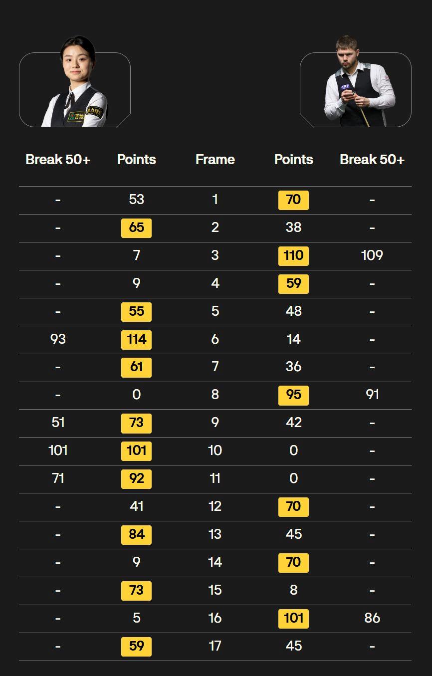 △阅历赛第一轮:白雨露10-7丹尼尔·沃默斯利